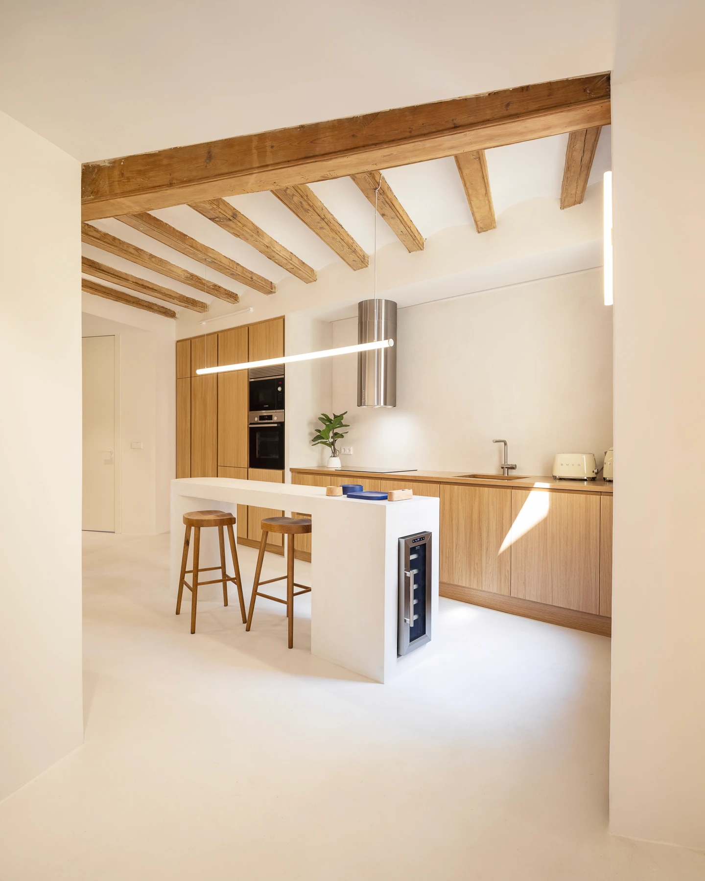 This renovated Gothic Quarter apartment captures the essence of old Barcelona while embracing modern design. With an open layout, refined materials, and a calm palette, it balances history and contemporary living—featuring a sleek kitchen, stylish showers, and a tranquil bedroom retreat in the city’s heart.