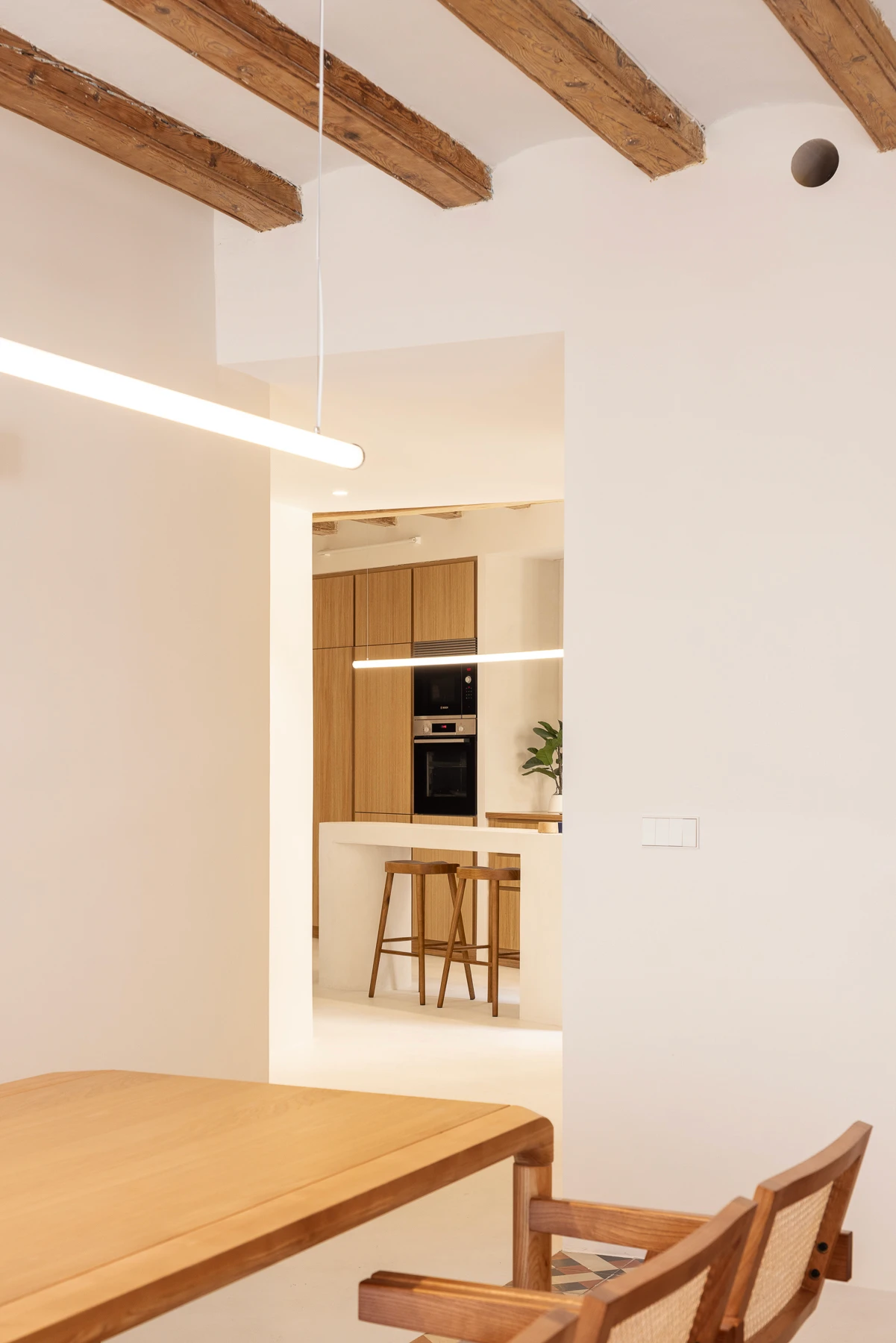 This renovated Gothic Quarter apartment captures the essence of old Barcelona while embracing modern design. With an open layout, refined materials, and a calm palette, it balances history and contemporary living—featuring a sleek kitchen, stylish showers, and a tranquil bedroom retreat in the city’s heart.