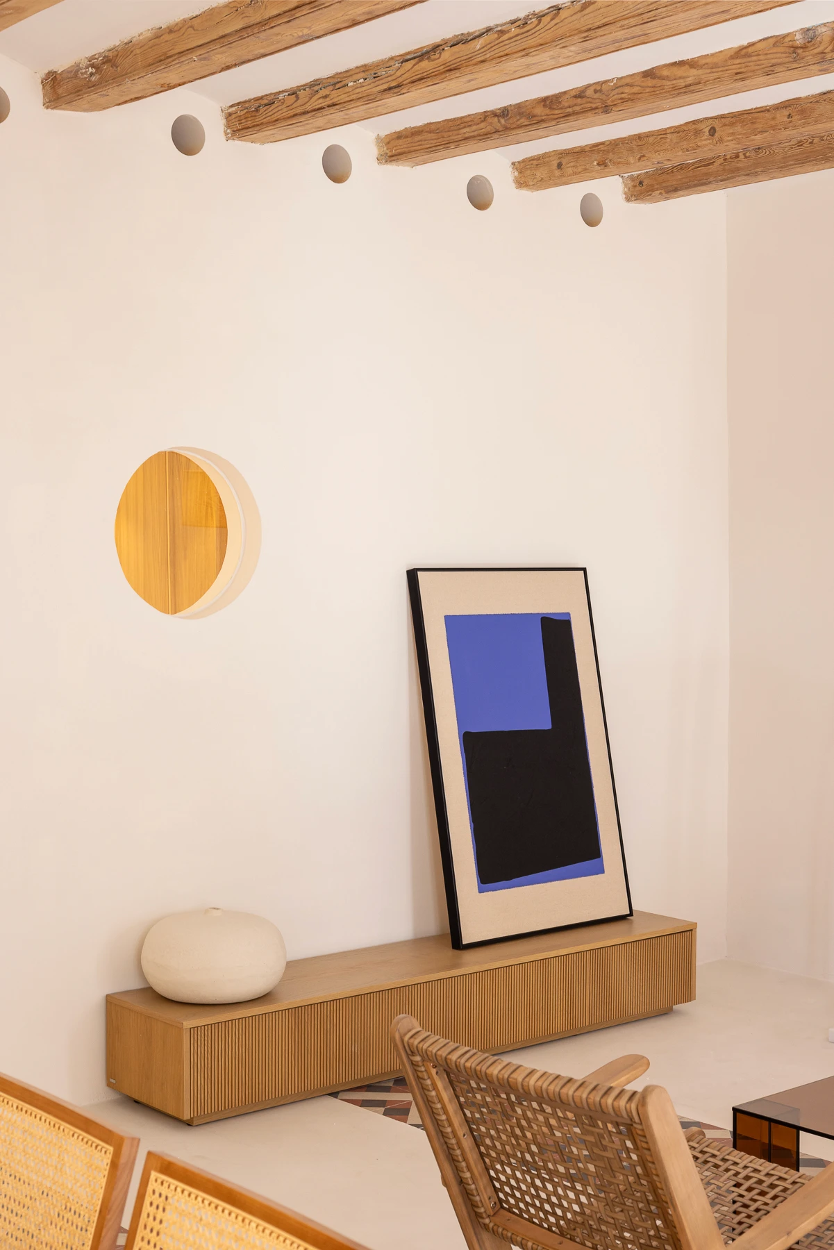 Interiors are defined by light, warmth, and simplicity. Large openings link living spaces with private terraces and gardens, creating a natural flow between inside and out. Soft stone, wood, and earthy tones mirror Mallorca’s landscape, giving each home a calm, timeless feel.